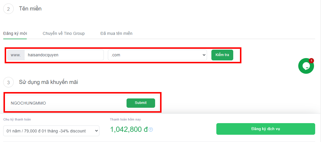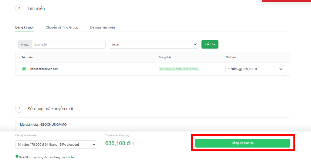 Các bước đăng ký Hosting TINO giảm giá 30%