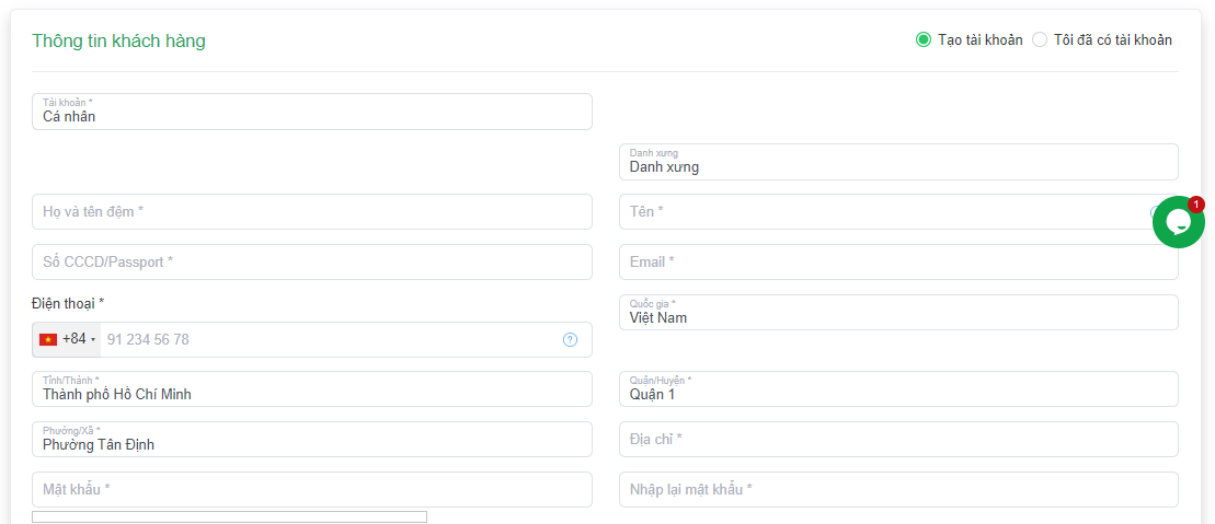 Tiếp theo các bạn điền đầy đủ thông tin vào form để tiến hành thanh toán
